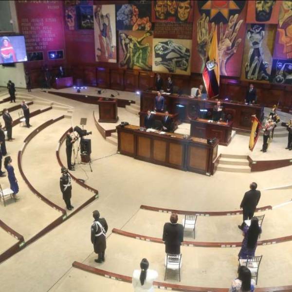 Recibido por el titular del Legislativo, César Litardo, y con pocas autoridades de distintas funciones del Estado presentes en el Parlamento, inició la ceremonia.