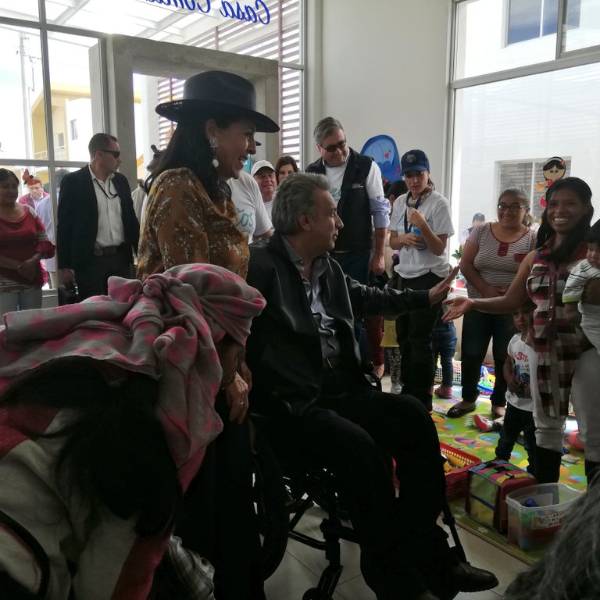 El presidente Lenín Moreno entregó 1.400 viviendas destinadas a la población de extrema pobreza en Antonio Ante, en la provincia de Imbabura. Las urbanizaciones cuentan, según el Gobierno, con servicios básicos y vías de acceso. A la cita acudió la primera dama, Rocío González de Moreno; el alcalde de Antonio Ante, Fabián Posso, y el Prefecto de Imbabura, Pablo Jurado. Ciudadanos de Antonio Ante saludaron a Moreno en el patio deportivo de la urbanización "La Dolorosa", donde recibirán sus actividades recreativas.