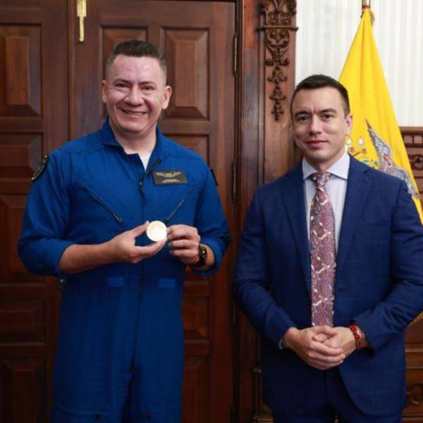 El primer ecuatoriano que viajará al espacio se reunió con el presidente Daniel Noboa