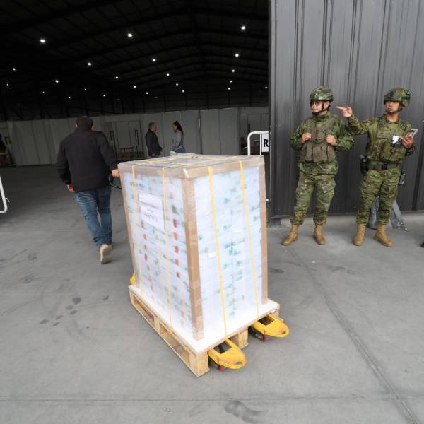 471 152 papeletas correspondientes a las circunscripciones especiales del exterior de la consulta popular y referéndum 2025 fueron trasladadas desde donde se imprimen, el Instituto Geográfico Militar (IGM), hacia Montgar, la empresa que integra los paquetes electorales.
