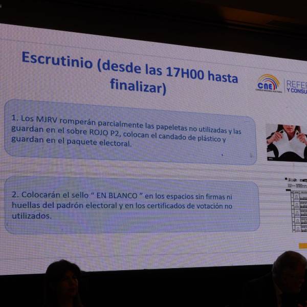 "Lo haremos con todo nuestro personal que tenemos desplegado en nuestras delegaciones, básicamente con los coordinadores de mesa, que son quienes recogerían la información de la muestra. Y sería transmitido por los canales del CNE hacia nuestro centro de consolidación de datos", explicó Wilson Hinojosa, coordinador de procesos electorales.