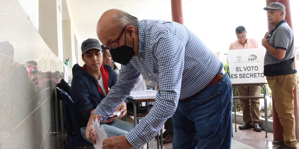 Una persona de la tercera edad ejerce su derecho al voto en las elecciones de agosto 2023.( )