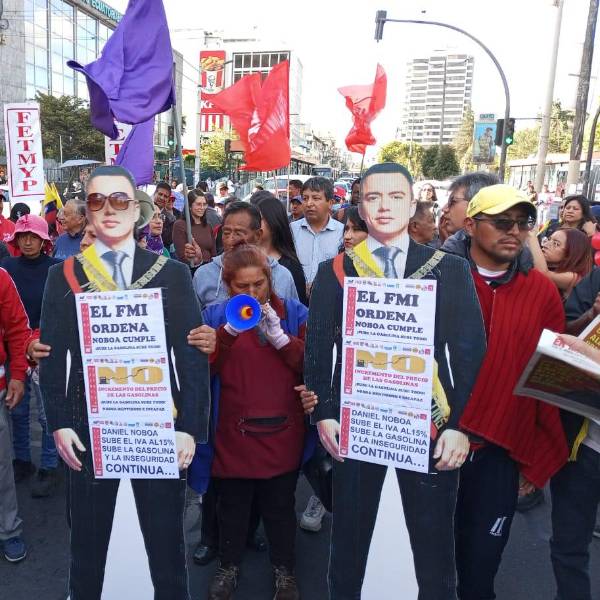 La jornada nacional de rechazo está liderada por la Unión General de Trabajadores del Ecuador (UGTE), la Federación de Estudiantes Universitarios del Ecuador (FEUE), la Federación Única de Afiliados al Seguro Social Campesino (Feunassc), Mujeres por el Cambio y representantes de los jubilados.