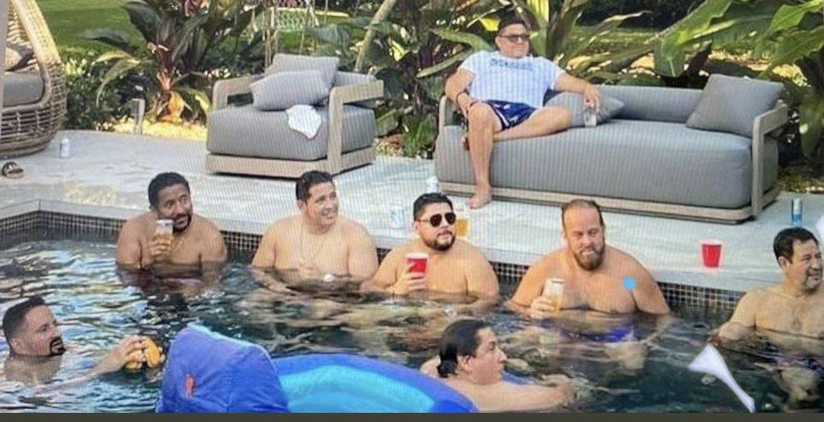 La fotografía fue tomada en Miami el 18 de abril de 2022, en la que aparece en una piscina junto a Xavier Jordán y Pablo Mendoza, prófugos de la justicia por actos de corrupción en la negociación de insumos médicos en dos hospitales de Guayaquil durante la pandemia del COVID-19.