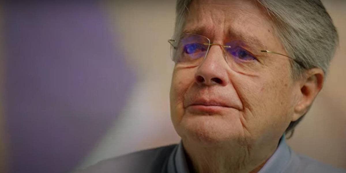 Guillermo Lasso llora mientras cuenta los logros de su Gobierno, en un documental