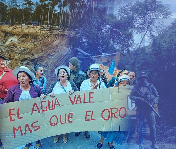 Fotografía de protestantes indígenas en contra de la minería en Ecuador( )