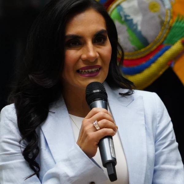 Verónica Abad durante una rueda de prensa en Quito el 28 de noviembre de 2023. ( )
