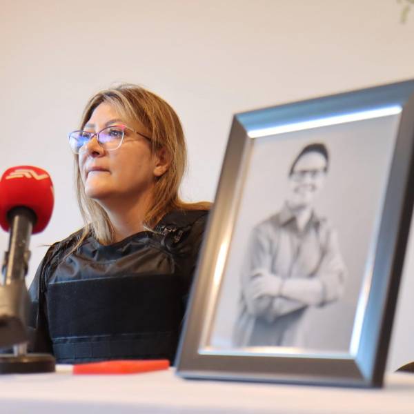Verónica Sarauz, esposa del candidato a la Presidencia de la República, Fernando Villavicencio Valencia, dio una rueda de prensa la tarde de este sábado 12 de agosto de 2023, en Quito, una vez que se definiera a Andrea González Nader como su reemplazante en la alianza Gente Buena y el movimiento Construye (listas 25).