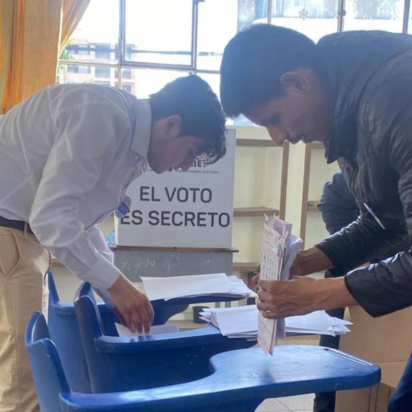 Los miembros de las juntas receptoras del voto realizan el conteo de votos en las elecciones de febrero 2025.( )