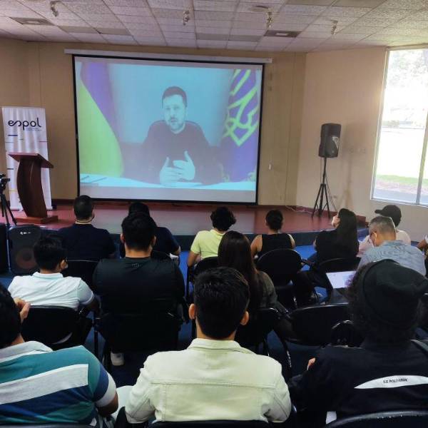 El presidente ucraniano, Volodímir Zelenski, mantuvo un encuentro virtual con estudiantes universitarios de Quito y Guayaquil este miércoles 7 de mayo.