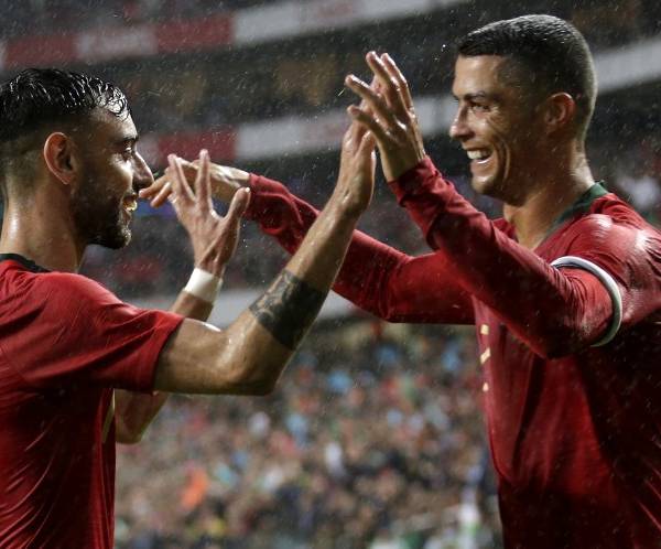 Gonçalo Guedes firmó un doblete (minutos 17 y 55) y Bruno Fernandes (37') logró el otro gol de los campeones europeos.