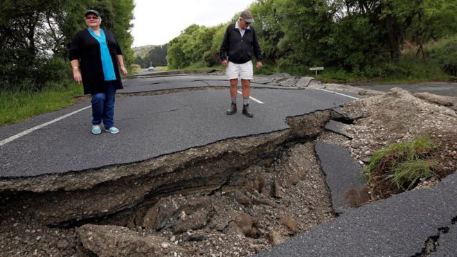 El terremoto rompió varias calles y carreteras en la Isla Sur.