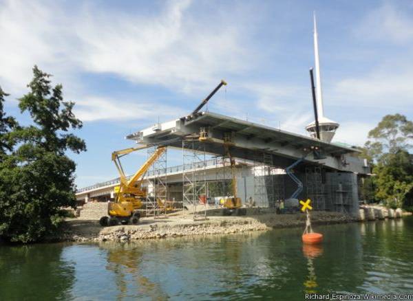La empresa había diseñado un puente de 90 metros de largo que uniría Isla Teja y Las Ánimas, formado por dos tramos móviles y elevables que permitirían la navegación por el río.