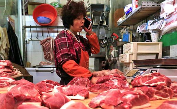 Venta de carne en un mercado en Pekín. El gobierno chino negó categoricamente los rumores sobre los productos enlatados que envía a África. Foto: BBC MUNDO