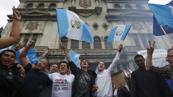 Apenas se supo que al presidente de Guatemala, Otto Pérez Molina, le habían retirado su inmunidad, fuera del Congreso los manifestantes comenzaron a corear: "El pueblo, presente, no tiene presidente".