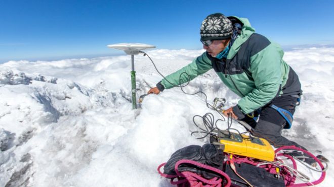 Un expedicionario francés colocó el GPS en la cumbre del Chimborazo para realizar la medición.