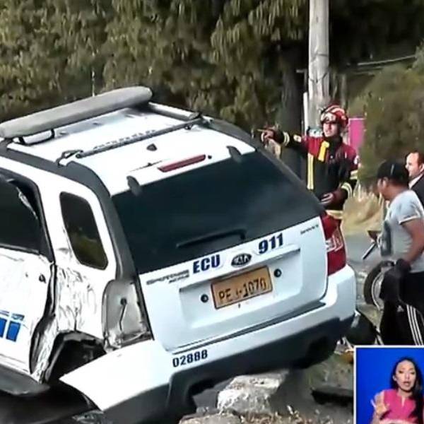 Quito: un patrullero de la Policía Nacional se chocó en la avenida Mariscal Sucre, este 31 de julio