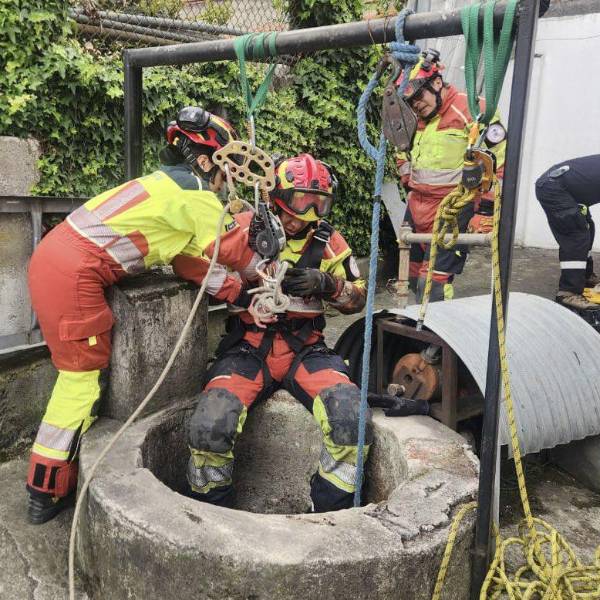 Cinco efectivos intervinieron en el rescate. Se empleó un sistema de poleas y cuerdas para así garantizar una extracción segura en espacios verticales confinados.