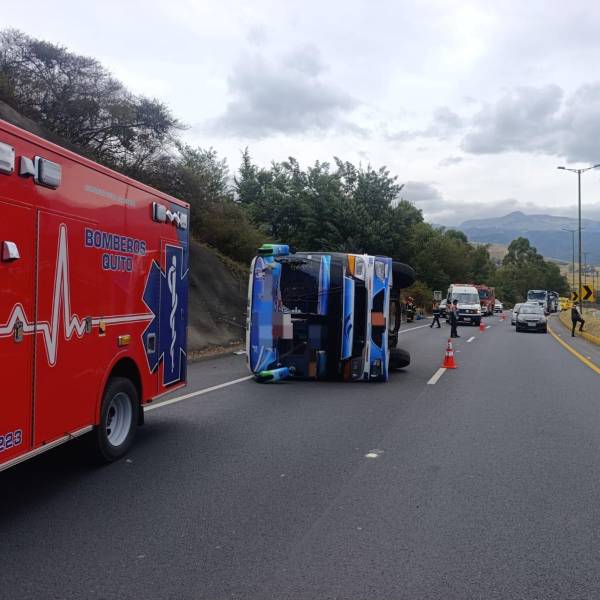 Un bus de transporte de pasajeros se volcó la mañana de este viernes 19 de septiembre en Pifo, extremo nororiental de Quito, y hubo seis heridos.