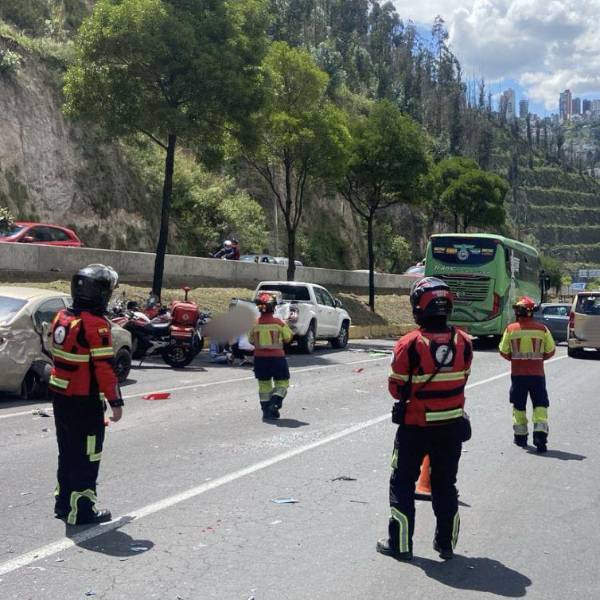 Este choque múltiple dejo personas heridas, que fueron atendidas por miembros del Cuerpo de Bomberos de Quito.