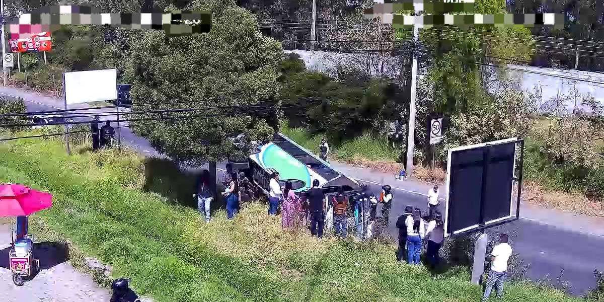 Un bus se volcó en la carretera E-35, antes de la entrada a la parroquia El Quinche