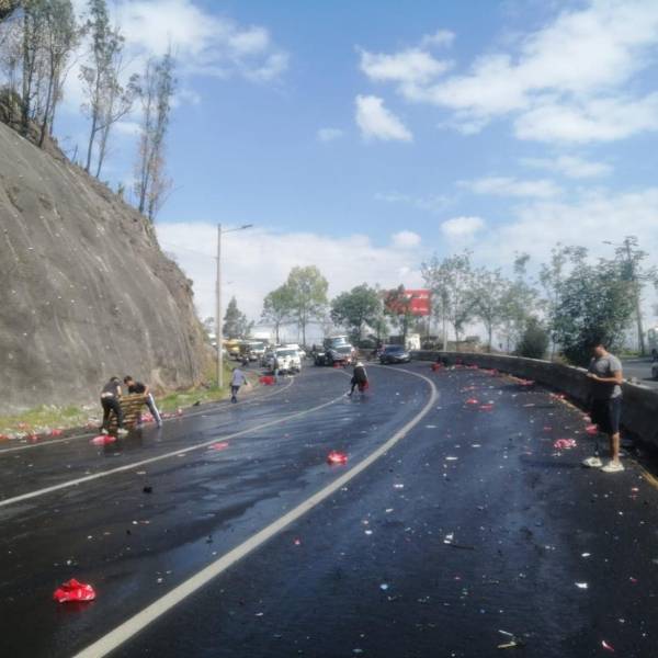 Se dio en el carril de sentido norte-sur. Decenas de jabas y botellas quedaron esparcidas sobre la calzada. Las unidades de la AMT y de la Empresa Pública Metropolitana de Movilidad y Obras Públicas (Epmmop) se trasladaron al sitio para atender la emergencia y limpiarlo.