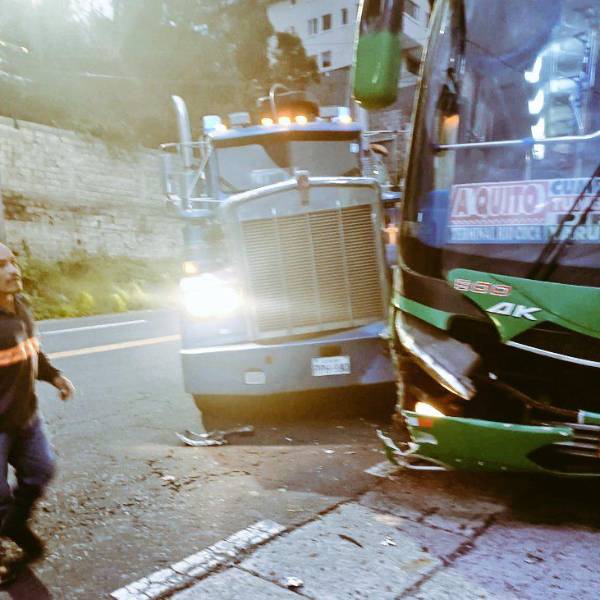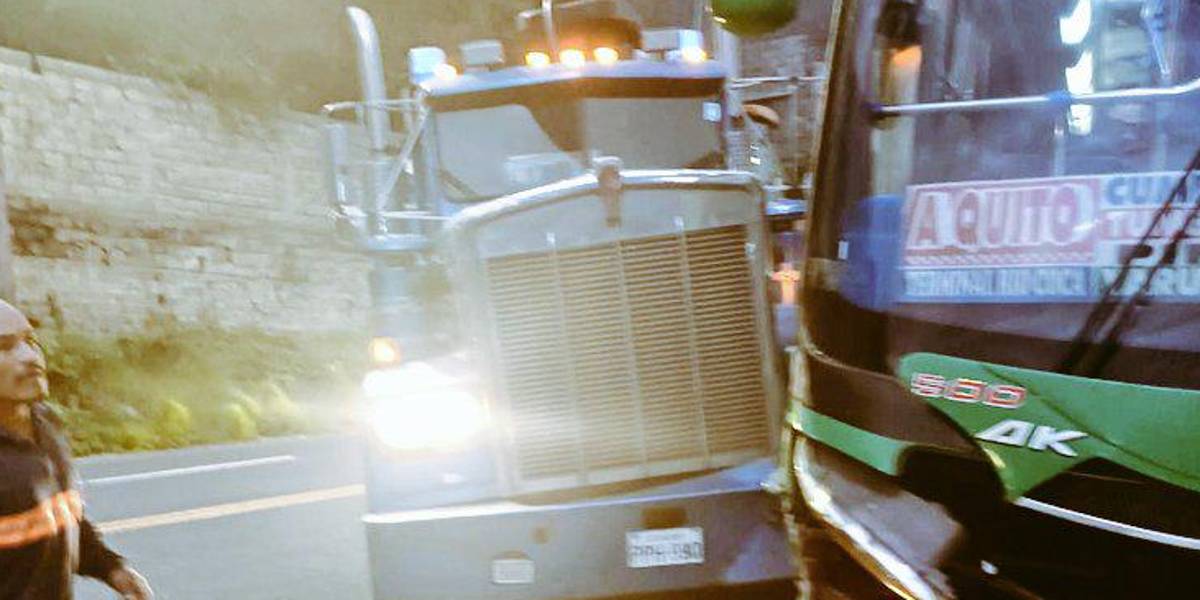 Las autoridades no reportaron personas heridas, únicamente daños materiales por el colapso entre los dos vehículos pesados que circulaban en sentido Valle- Quito. Se conoce que se trató de un choque por alcance.