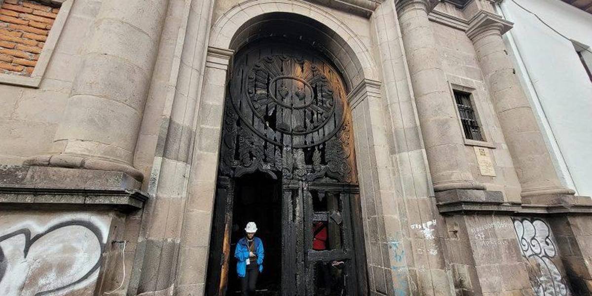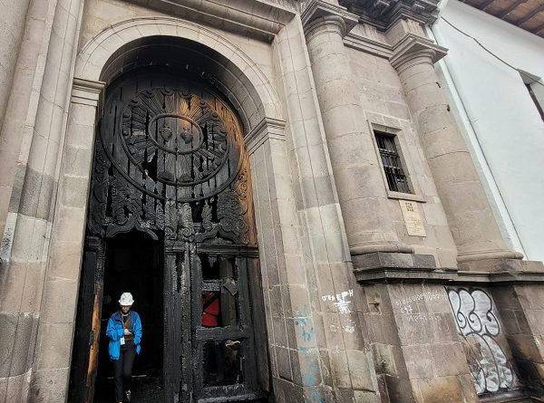 Centro Histórico de Quito: vándalos quemaron puerta patrimonial del Hospital San Lázaro