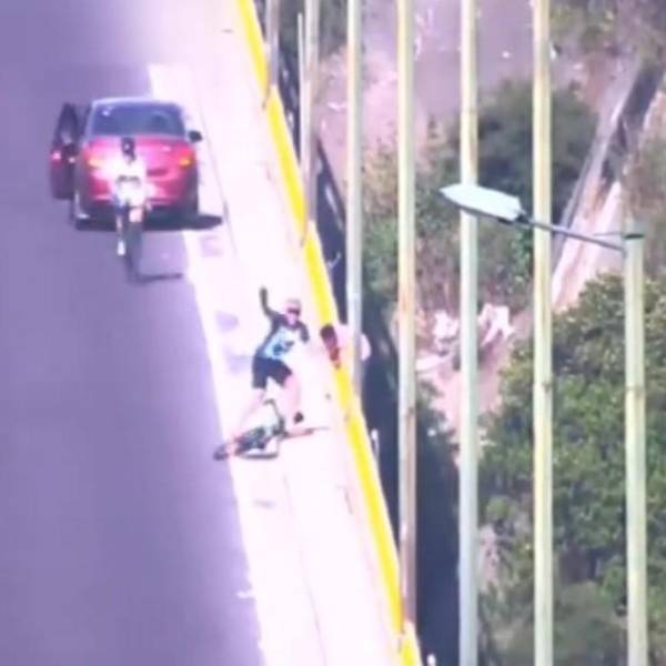 Las cámaras del ECU 911 de Quito captaron un acto de ayuda entre ciudadanos, cuando un ciclista evitó que un hombre se suicide en el puente El Chiche, en el nororiente de Quito.