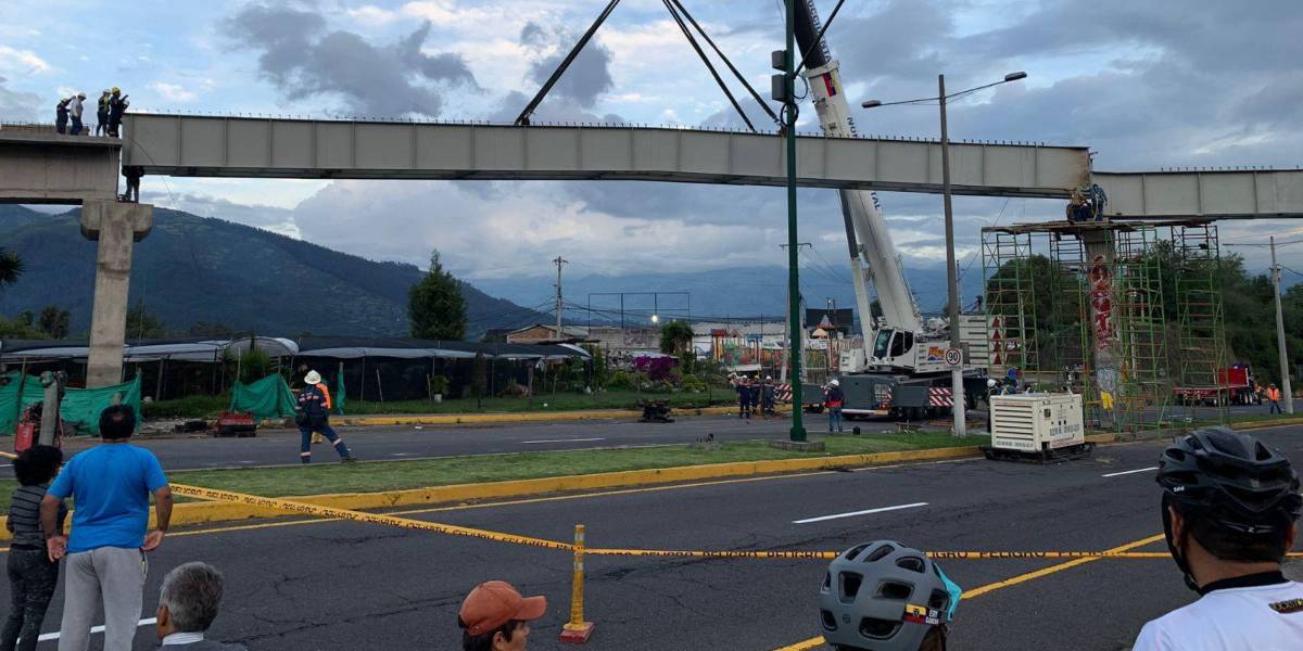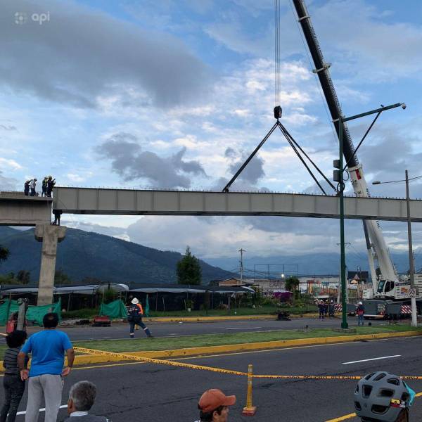 Imagen de archivo del domingo, 8 de diciembre del 2024, durante la colocación de las estructuras del paso elevado en el sector del puente 8 de la Autopista General Rumiñahui.( )
