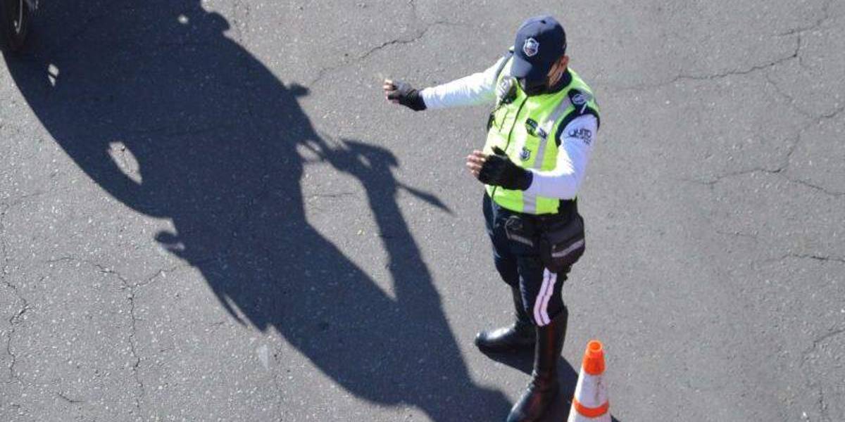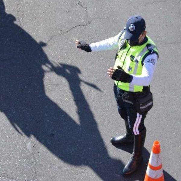 Un agente de tránsito gestiona la movilidad en Quito.( )