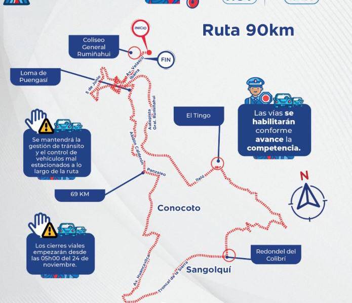 Al día siguiente, domingo, la AMT ejecutará cierres viales desde las 05:00. La competencia empieza desde las 06:00 y termina aproximadamente a las 13:30.