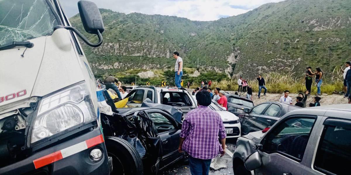 Este siniestro dejó tres fallecidos, 19 heridos y 24 vehículos con daños parciales o totales.