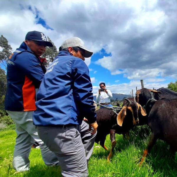 La Unidad de Bienestar Animal (UBA), la Agencia Metropolitana de Control (AMC), Agrocalidad y el Cuerpo de Agentes Metropolitanos rescataron cuatro chivas en posesión de una mujer que comercializaba la leche no pasteurizada de estos animales, en la esquina de las calles Chile y Chimborazo (Centro Histórico).