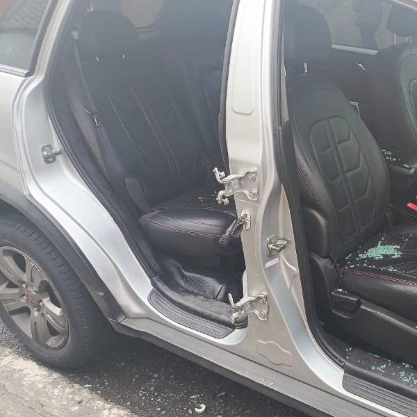 Pero tras "unos minutos" se encontró con su carro destruido. Delincuentes se robaron las pertenencias que tenía en el interior del vehículo, pero no conformes con eso, también se llevaron dos puertas del lado derecho.