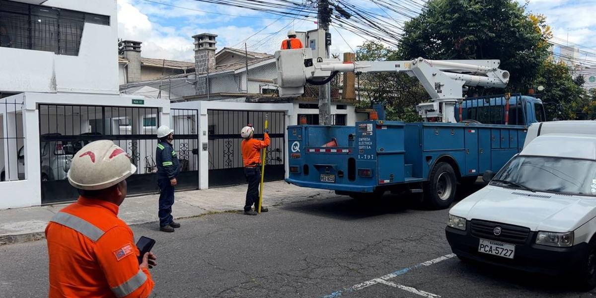 Trabajadores de la Empresa Eléctrica Quito hacen reparaciones en el sector de La Coruña. ( )