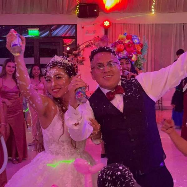 Los invitados a la boda también fueron rociados de ese material. Pese a ello, la novia que se llama Valery Martina grabó un video en su cuenta de TikTok para referirse a lo que pasó. Con una sonrisa en los labios, recordó que le bautizaron como Lady Carnaval, Lady Espuma o la Novia de Quito. Contó que, pese a todo, sí disfrutó mucho de su boda. "Estoy muy felizmente casada".