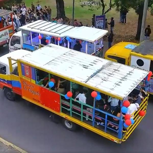 Una de esas paradas es el costado sur de El Ejido. En cada parada, los coordinadores de las chivas arman programa: hacen coreografías, dinámicas en grupo, concursos de baile y hasta eligen a la quiteña bonita y al chulla quiteño.