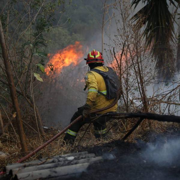 Los miembros del Cuerpo de Bomberos trabajan con equipos de protección manual, con camiones de bombeo para poder ingresar con líneas de ataque de agua de acuerdo con la topografía del terreno.