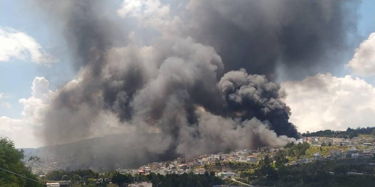 Una gran columna de humo se levanta desde el suroccidente de Quito. ( )