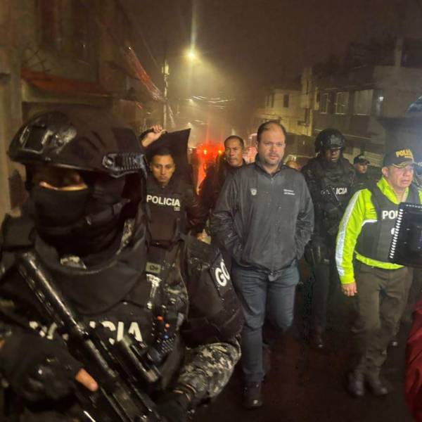 Equipos tácticos de la Policia llegaron acompáñados del ministro del Interior, John Reimberg, quien encabezó un operativo en el sector del Comité del Pueblo, norte de Quito, el 10 de abril.