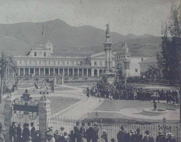 El Palacio de Carondelet y la Plaza de la Independencia en 1909 cuando se inauguró el monumento.( )