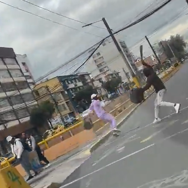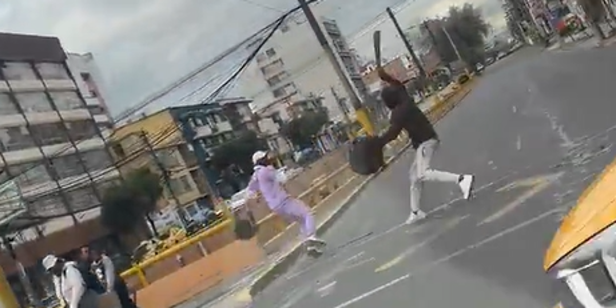 El material, publicado en la cuenta de X del ciudadano José Velasteguí, capta el momento exacto en que dos hombres empiezan una riña en la mitad de la vía; uno de ellos lo amenaza con un machete.