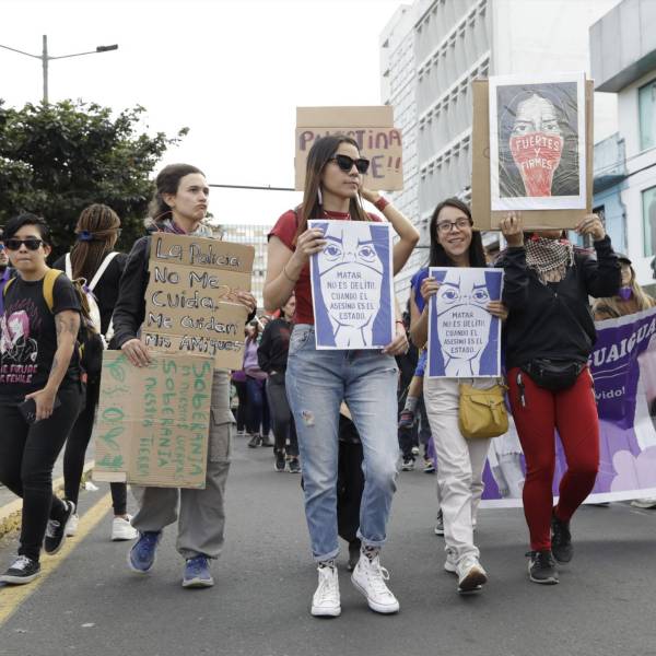 La manifestación también tuvo consignas en contra del gobierno de Daniel Noboa y de la Policía.