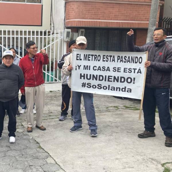 Un grupo de moradores de Solanda, en el sur de Quito, realizó un plantón, la mañana de este lunes 27 de noviembre de 2023. Protestaron porque el Municipio no les ha dado una solución frente a la problemática del hundimiento de las viviendas aledañas al Metro de Quito, el cual se inaugurará el próximo 1 de diciembre.
