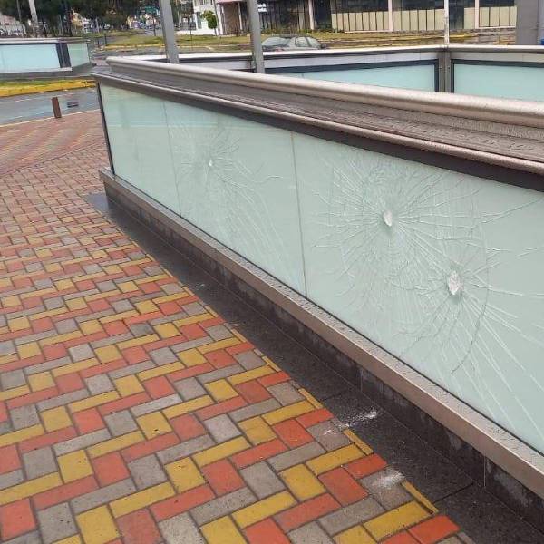 Los paneles de vidrio de la estación La Carolina están destrozados.