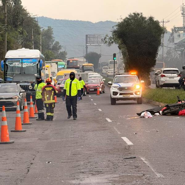 Una motociclista de aproximadamente 36 años de edad falleció en un siniestro de tránsito la mañana de este jueves 23 de octubre en la Panamericana Norte y Los Cóndores, norte de Quito.