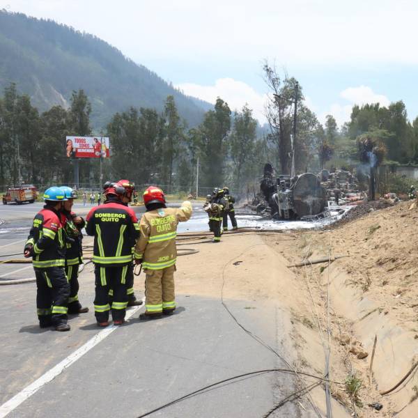 Quito, 24 de marzo de 2024. Un tanquero cargado de combustible se incendió en la avenida Simón Bolívar.( )