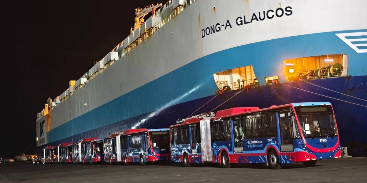 Los 60 buses eléctricos que renovarán la flota del Trolebús, en Quito, ya están en el país. La madrugada del 6 de febrero arribaron al Puerto de Manta, en Manabí, las 59 unidades restantes que se trasladarán hasta Quito en las próximas horas.