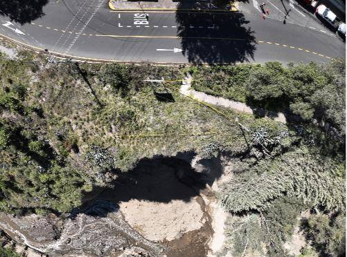 Hasta el momento, la vía no presenta daños ni existe afectación a estructuras cercanas; únicamente se identificó un poste de alumbrado público en una posición inestable, por lo que se solicitó su reubicación a la Empresa Eléctrica Quito (EEQ). Mientras tanto, equipos de la Unidad de Emergencias de la Empresa de Movilidad y Obras Públicas (Epmmop) y de la Administración Zonal La Delicia se desplazaron al lugar y trabajan de forma coordinada.